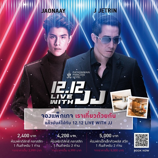 โรงแรมปทุมวัน ปริ๊นเซส ในเครือ เอ็ม บี เค กรุ๊ป จัดแคมเปญส่งท้ายปีเก่าต้อนรับปีใหม่ ออกแพ็กเกจ “เราเที่ยวด้วยกัน” ซึ่งเป็นโครงการที่รัฐบาลสนับสนุนราคาห้องพัก 40% พ่วงกับ คอนเสิร์ตพ่อลูกจากบ้านวรรธนะสิน เจ เจตริน และ เจ้านาย จินเจษฎ์ เจ้าของซิงเกิ้ล “คนละชั้น” โดยผู้ที่จองห้องพักสามารถเข้าร่วมชมคอนเสิร์ตลอยฟ้า พร้อมวิวหลักล้านใจกลางกรุงเทพฯ” ที่วิสต้า เทอร์เรซ ชั้น 8 โรงแรมปทุมวัน ปริ๊นเซส ในวันเสาร์ที่ 12 ธันวาคม พ.ศ. 2563 ตั้งแต่เวลา 20.00 น. เป็นต้นไป เพียงใช้สิทธิ์ “เราเที่ยวด้วยกัน” ซื้อแพ็กเกจห้องพัก รับทันทีส่วนลด 40% สำหรับห้องพักพร้อมอาหารเช้าและบัตรคอนเสิร์ต “12.12 Live with JJ”