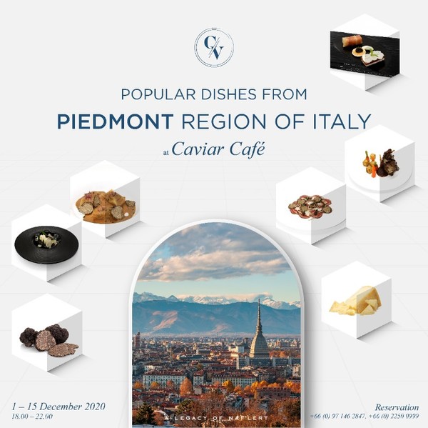 คาเวียร์ คาเฟ่ พร้อมให้คุณได้รับประสบการณ์รสชาติเมนูพิเศษ สูตรดั้งเดิมของแคว้นเพียมอนต์ โดยที่คุณไม่ต้องเดินทางไกลไปถึงอิตาลี เริ่มตั้งแต่วันที่ 1 – 15 ธันวาคม 2563 นี้ เท่านั้น ที่คาเวียร์ คาเฟ่ ปาร์คนายเลิศ ซอยสมคิด ถนนเพลินจิต กรุงเทพฯ สามารถสอบถามและสำรองที่นั่งได้ที่คาเวียร์ คาเฟ่ โทร. 097-146-2847 02-250-0999 หรือ www.caviarcafenailert.com Facebook: Caviar Cafe