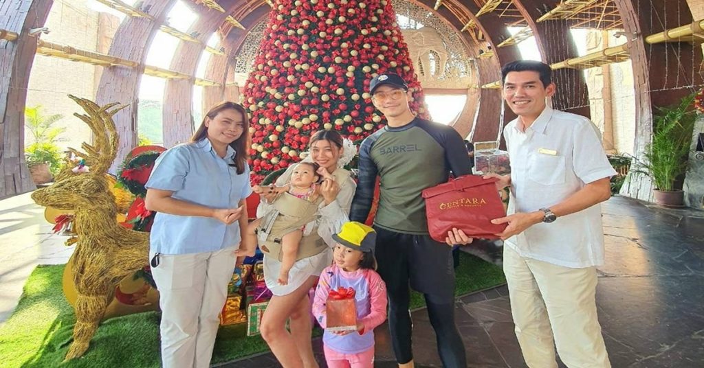 โรงแรมเซ็นทาราแกรนด์มิราจบีชรีสอร์ท พัทยา นำโดย เฉลิมรัฐ ขำสวัสดิ์ (ขวา) รองผู้จัดการทั่วไป และ จีระภา ไชยมาตร (ซ้าย) ผู้อำนวยการฝ่ายห้องพัก ให้การต้อนรับ กุ๊บกิ๊บ สุมณทิพย์, บี้ KPN ครอบครัวนักแสดง นักร้องชื่อดัง ในโอกาสเดินทางมาพักผ่อนที่รีสอร์ท