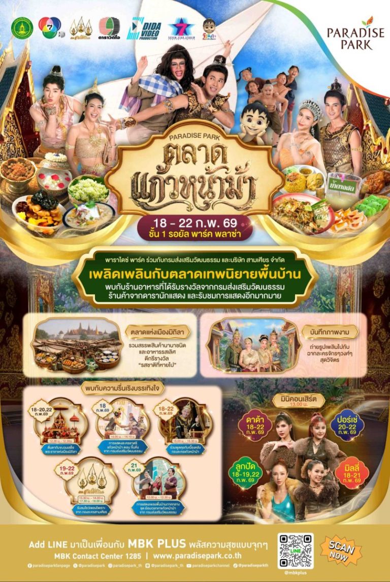 ห้ามพลาด! แก้วหน้าม้า จากเทพนิยายพื้นบ้าน สู่ตลาดกลางพาราไดซ์ พาร์ค ครบเครื่องทั้งช้อป ชิม โชว์ 18-22 ก.พ. นี้